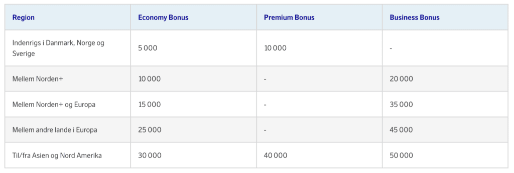 The cheapest award ticket in the new Business Class will require 20,000 EuroBonus points one way for flights within the Nordic+ region, which includes: