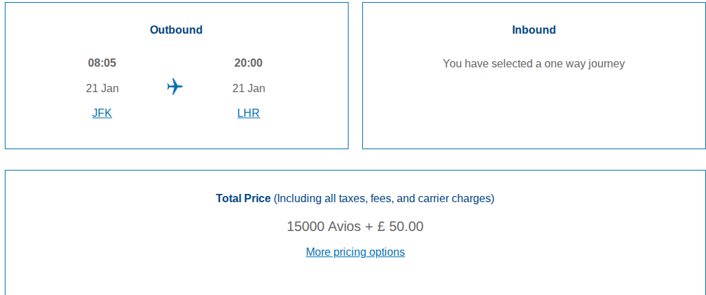 • Fly With BA East Coast To London For Just 15,000 Avios Each Way