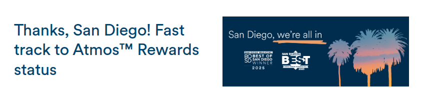 If San Diego is in your travel plans, these Alaska promotions are a nice opportunity to rack up Atmos Rewards points or accelerate your way to elite status. The double miles could help boost your balance quickly, while the fast track makes Atmos Silver or Gold achievable with just a few trips.